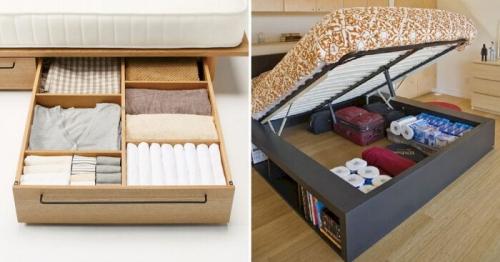 - запасные полотенца , подушки и одеяла , постельное белье — самое логичное предназначение подкроватной ниши. Простыни, одеяла, подушки всегда под рукой и не занимают лишнее место. Белье должно быть аккуратно разложено стопками.
