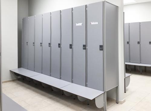 Материал шкафов. Часто раздевалки находятся в помещениях с повышенной влажностью, поэтому шкафы должны изготавливаться из влагостойких материалов. При этом они должны быть легкими в уходе и устойчивыми к внешнему воздействию.