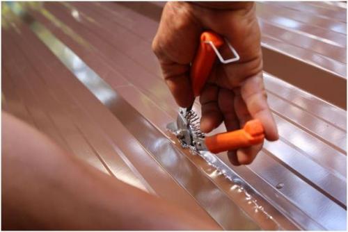Чтобы снизить нагрузки на руки, рекомендуется использовать ножницы для резки металла, которые оснащены нажимным усилителем и возвратной пружиной. Работать ими куда легче, чем стандартным инструментом.