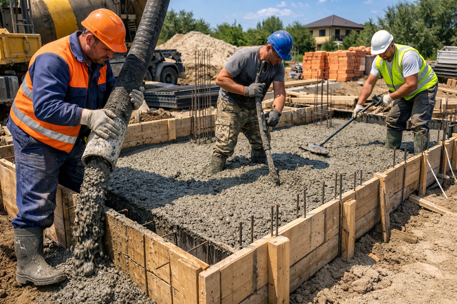 - Бетон марки М200-М250: Подходит для возведения стен одноэтажных домов и легких конструкций.