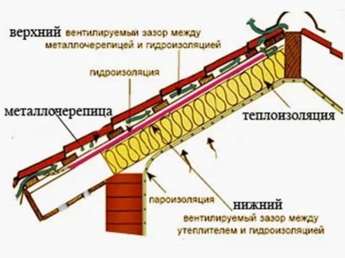 - между слоем утеплителя и кровлей;